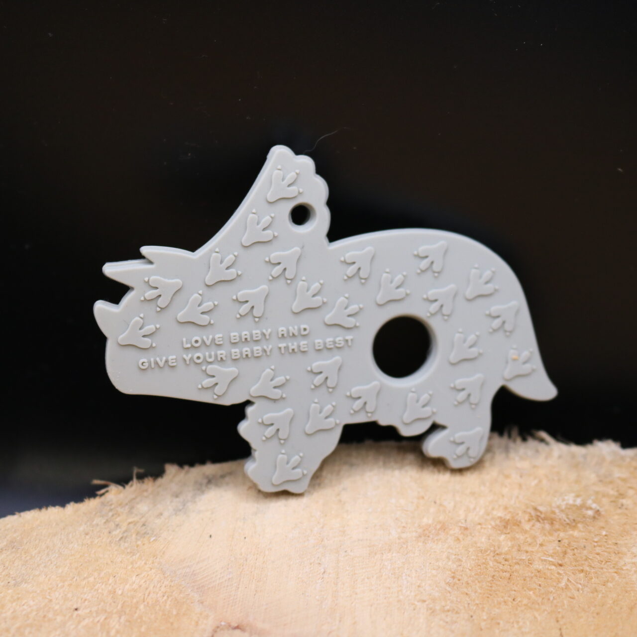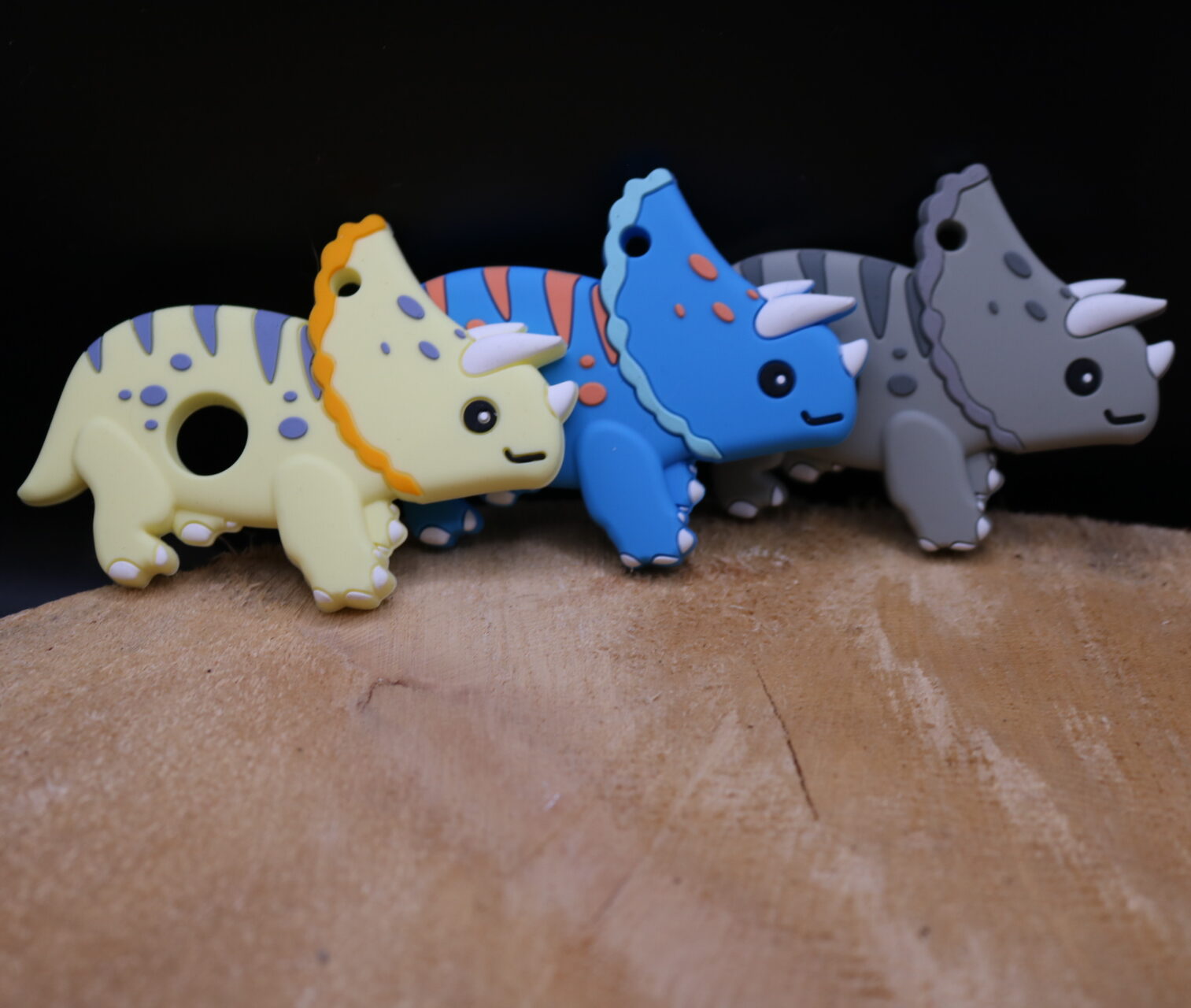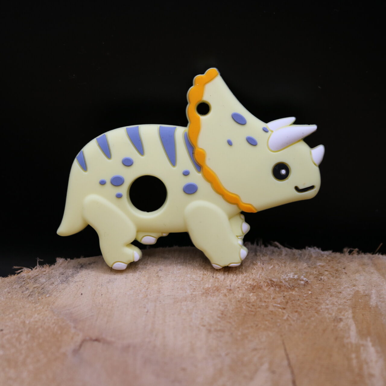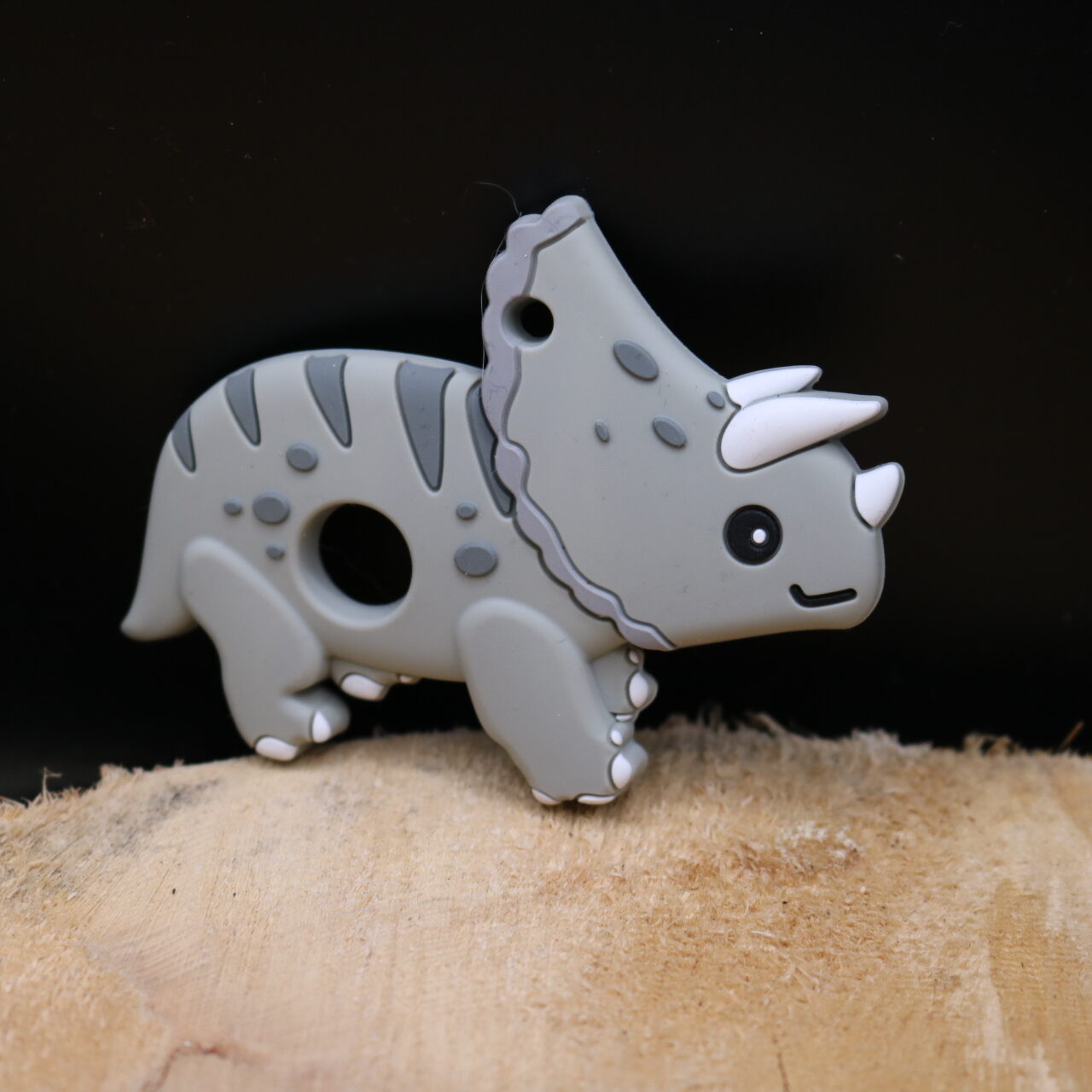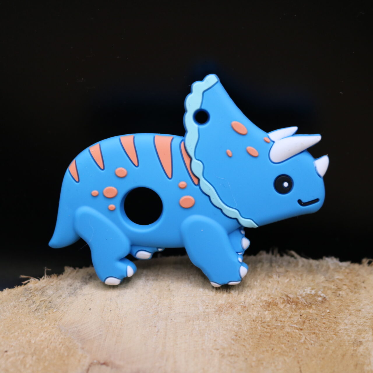 Anneau de dentition dinosaure à cornes, s’adapte sur tous les modèles d’attache sucette.
