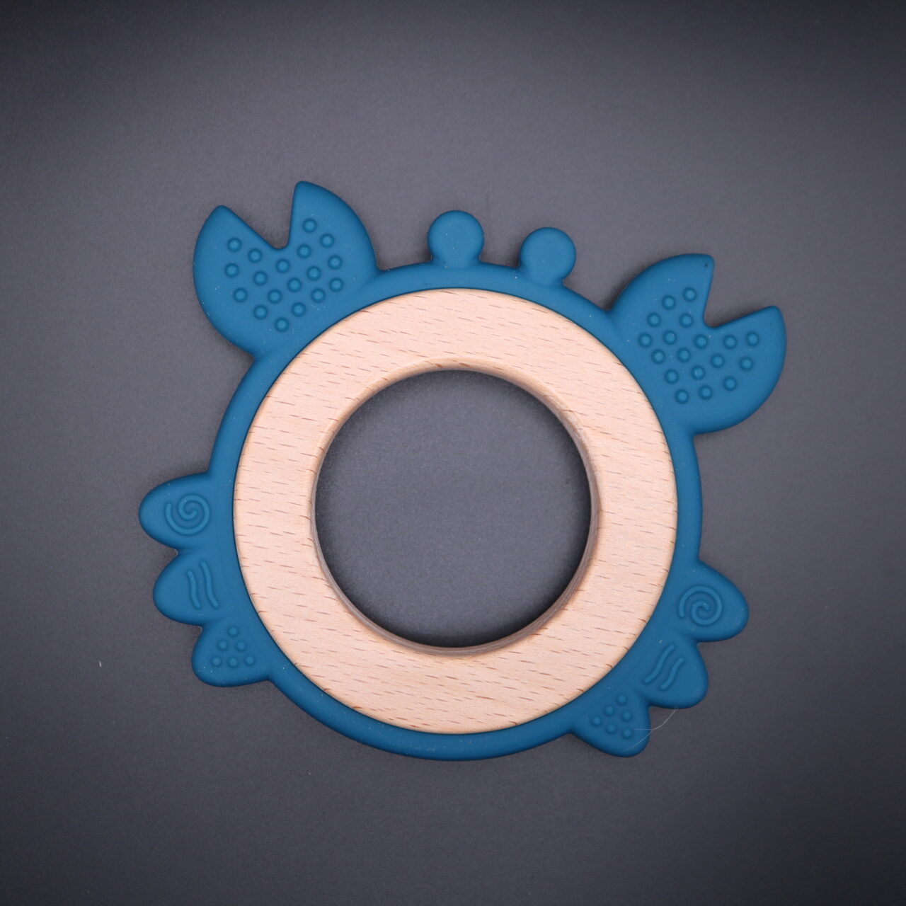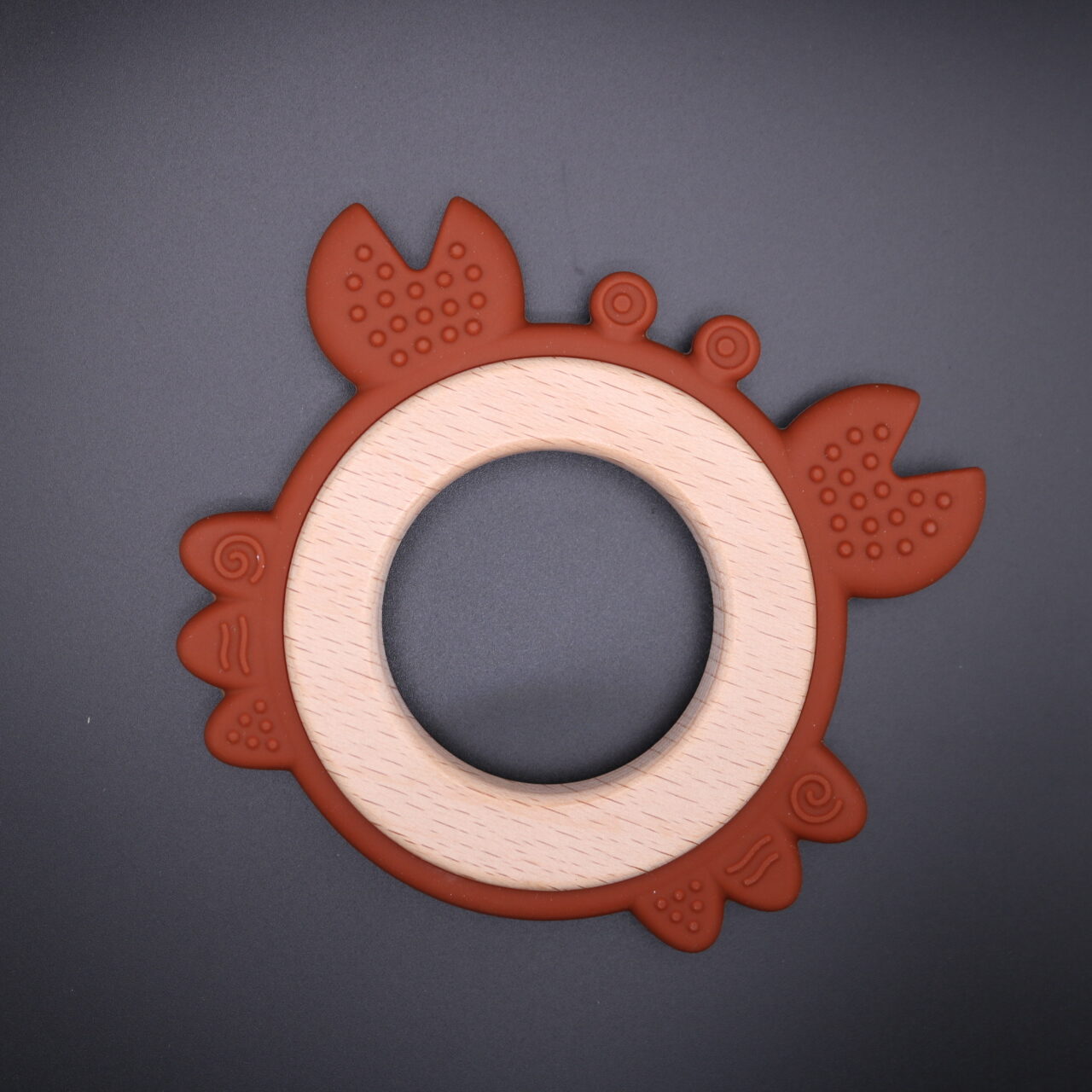 Anneau de dentition en bois et silicone, garanti pour un usage dès la naissance.