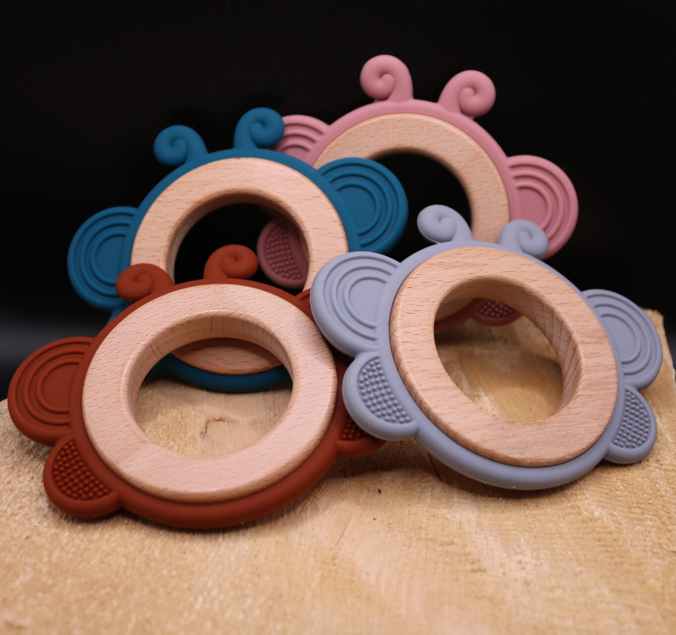Les objets en silicone ou bois sont idéales pour que bébé fasse ses gencives.