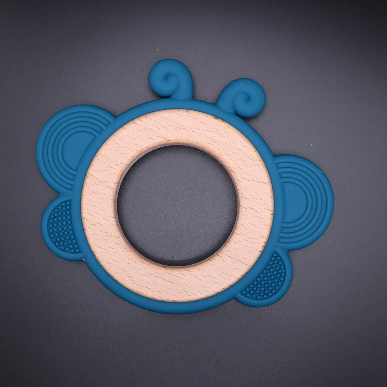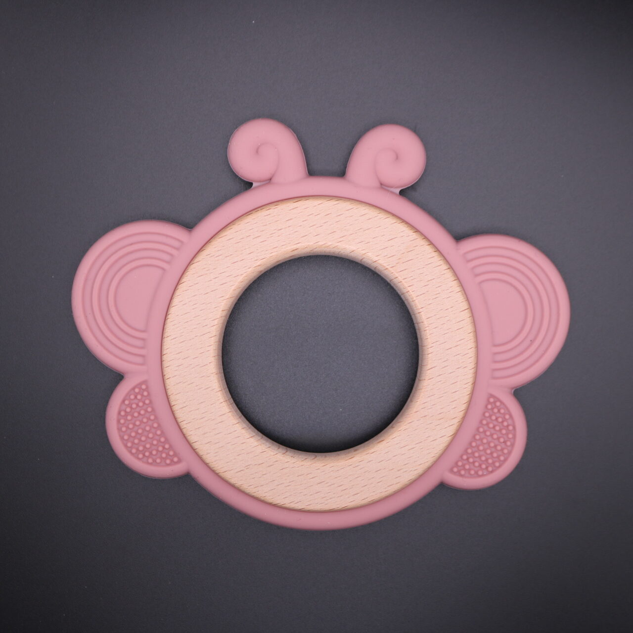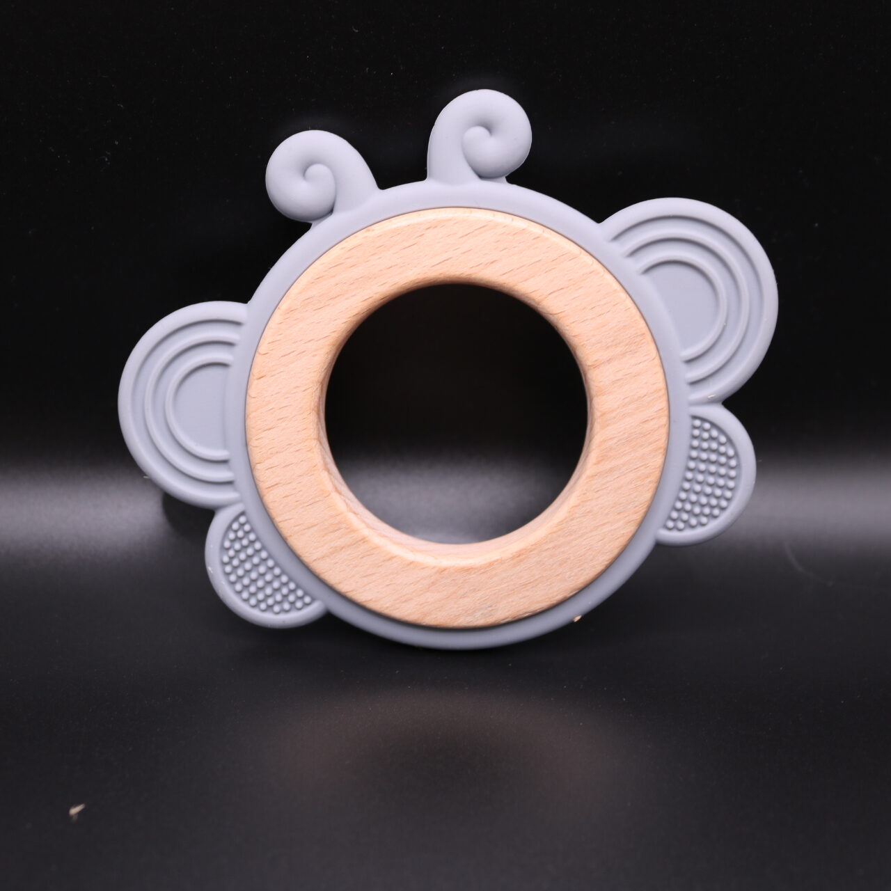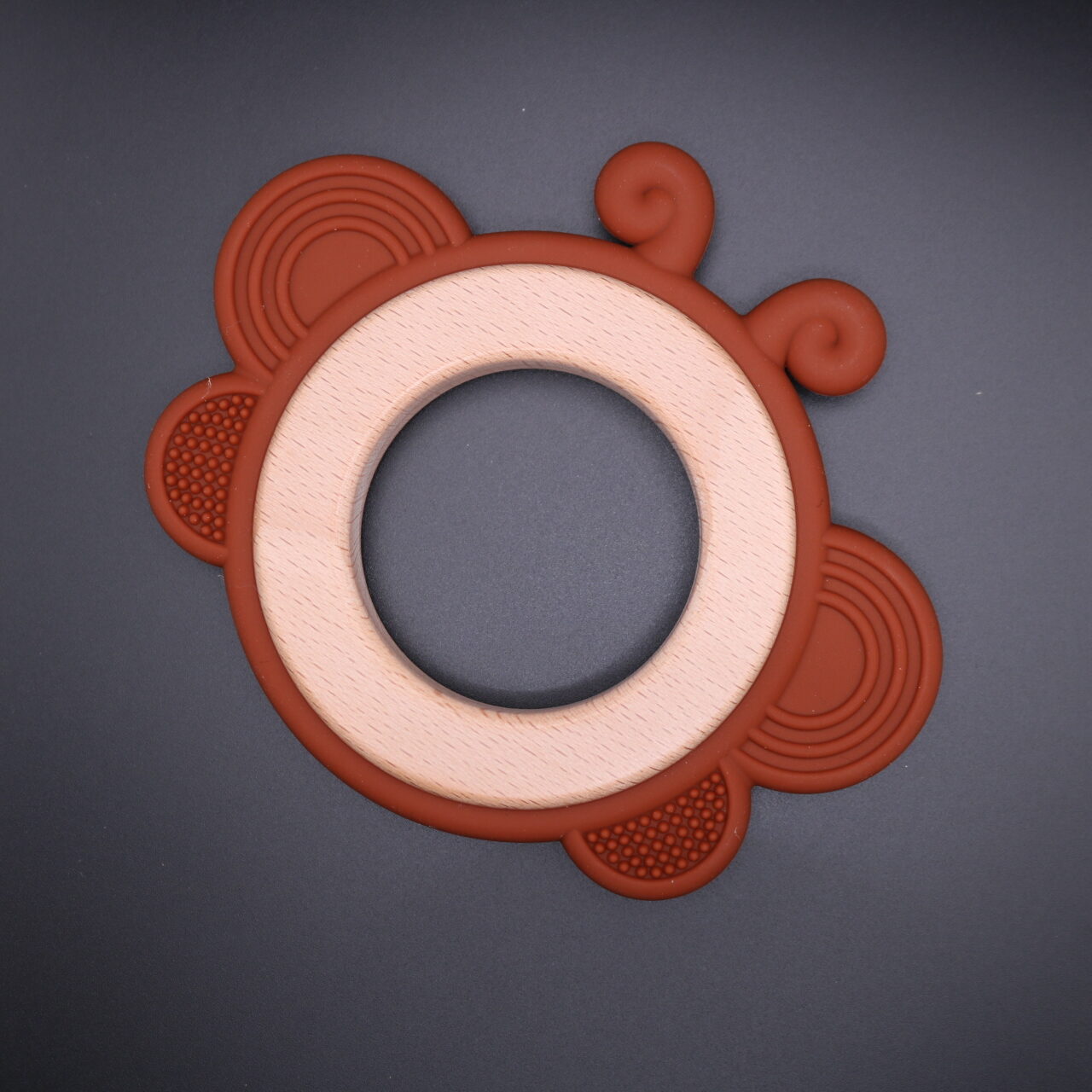 Anneau de dentition en bois et silicone, garanti pour un usage dès la naissance.