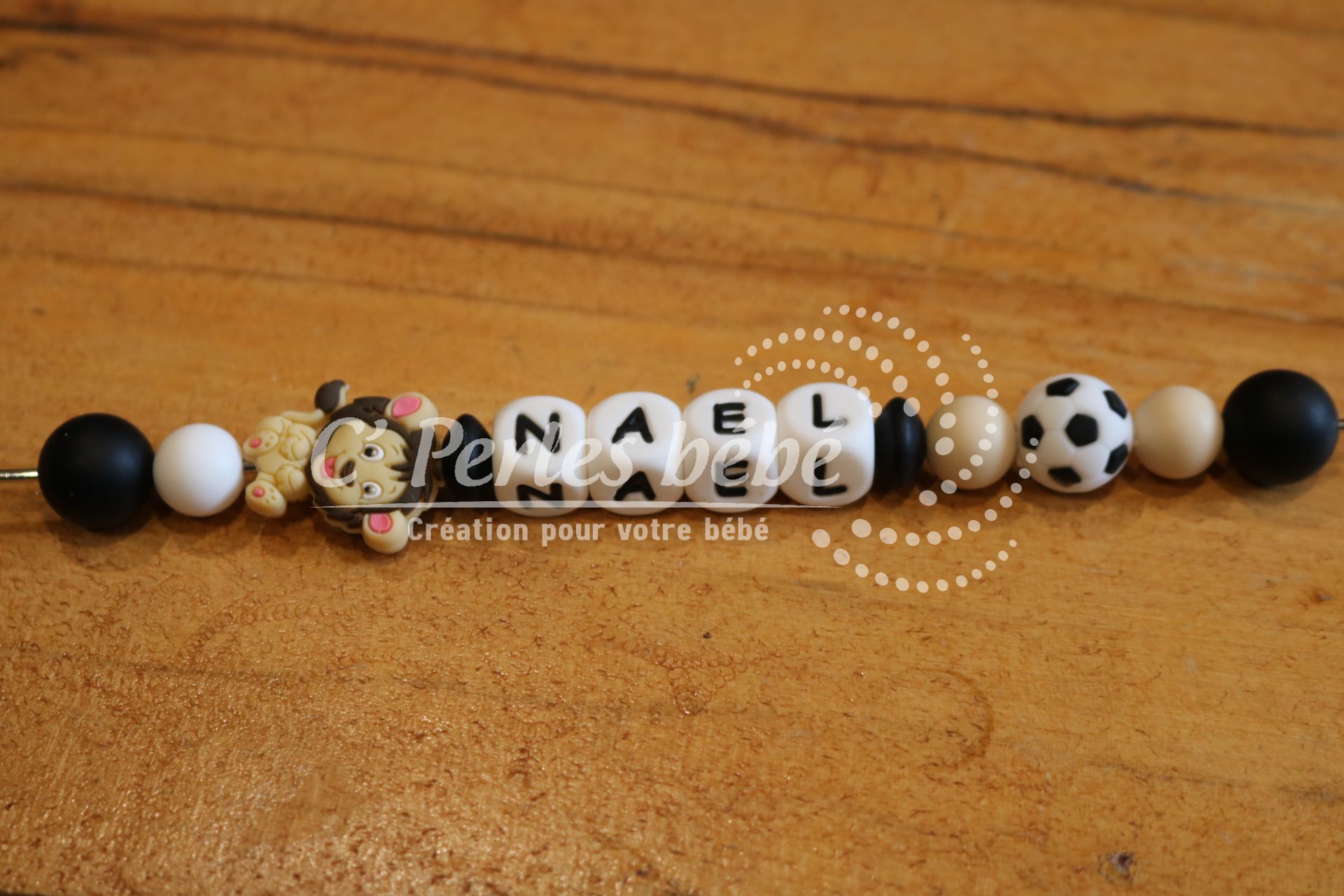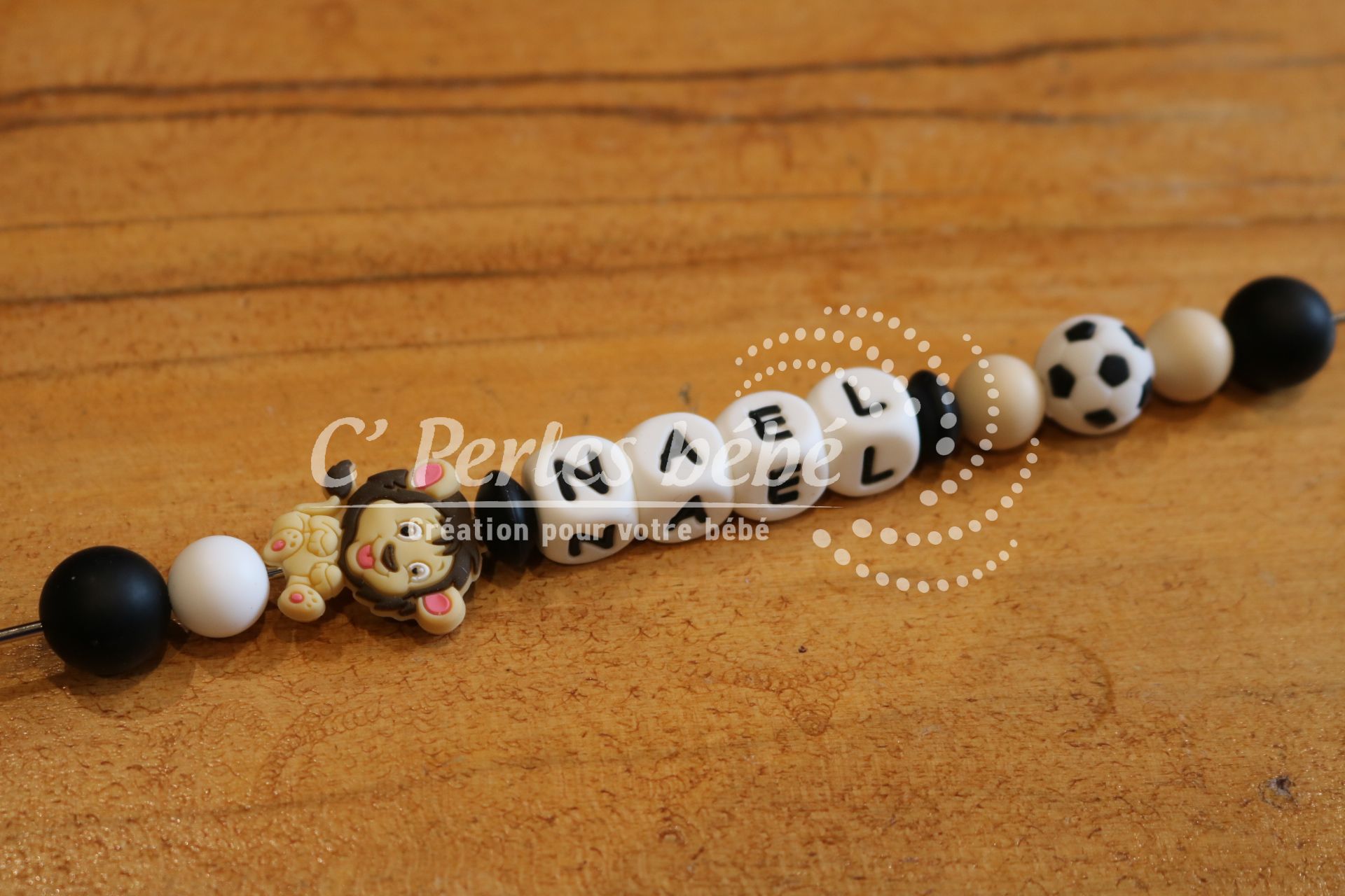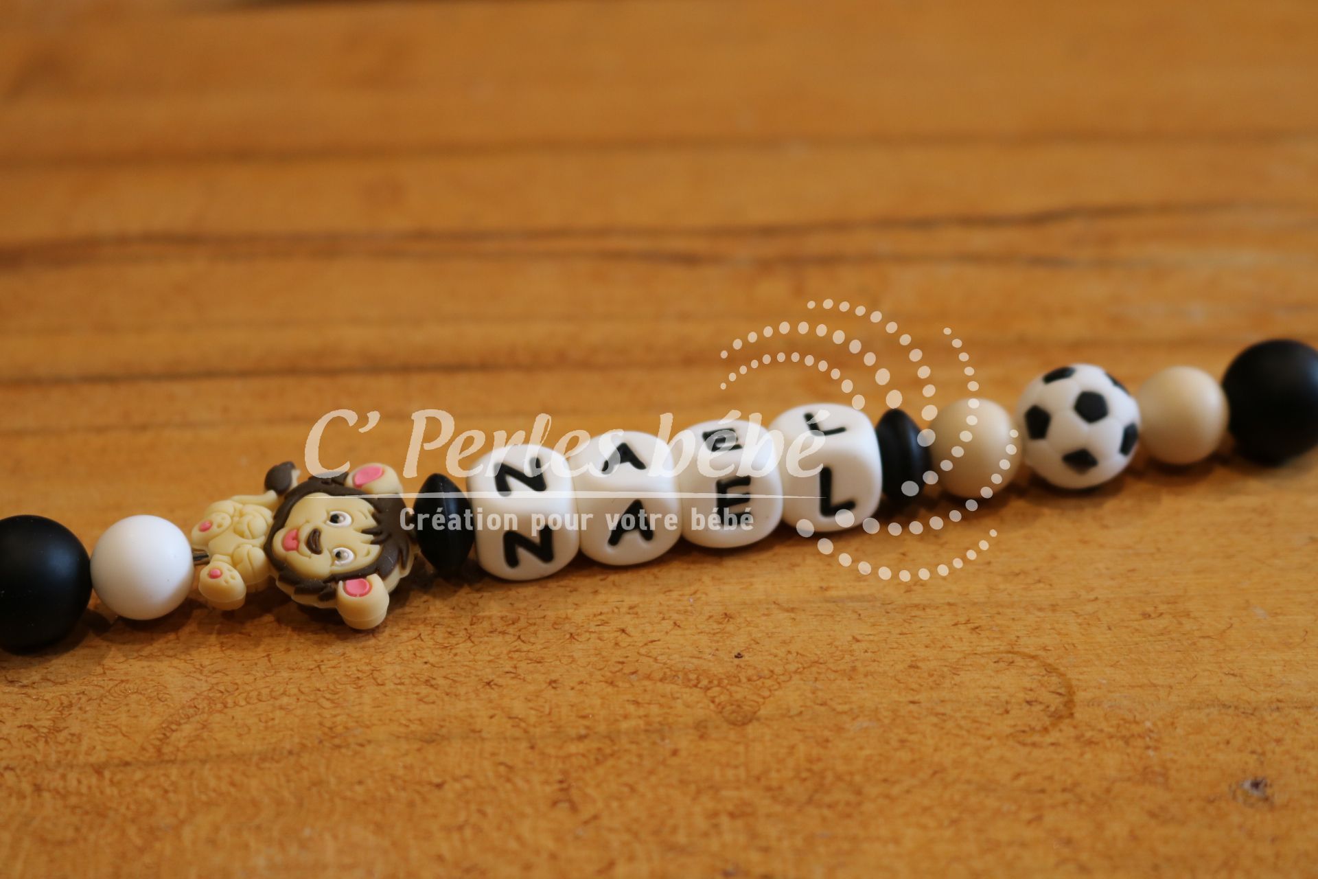 Attache sucette fait main par mes soins, modèle baby foot entièrement personnalisable.