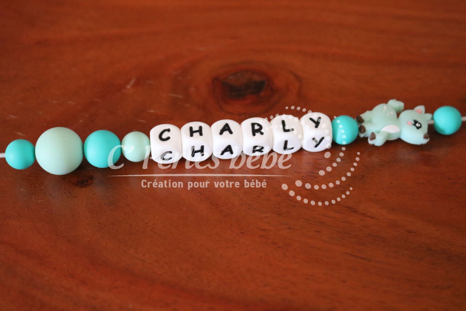 Fabriqué avec des perles en silicone, longueur max 22 cm (respect des normes de sécurité en vigueur).