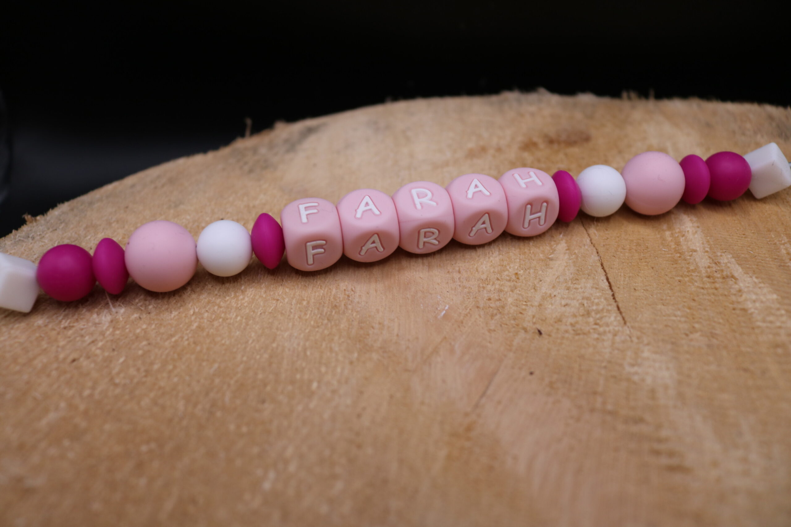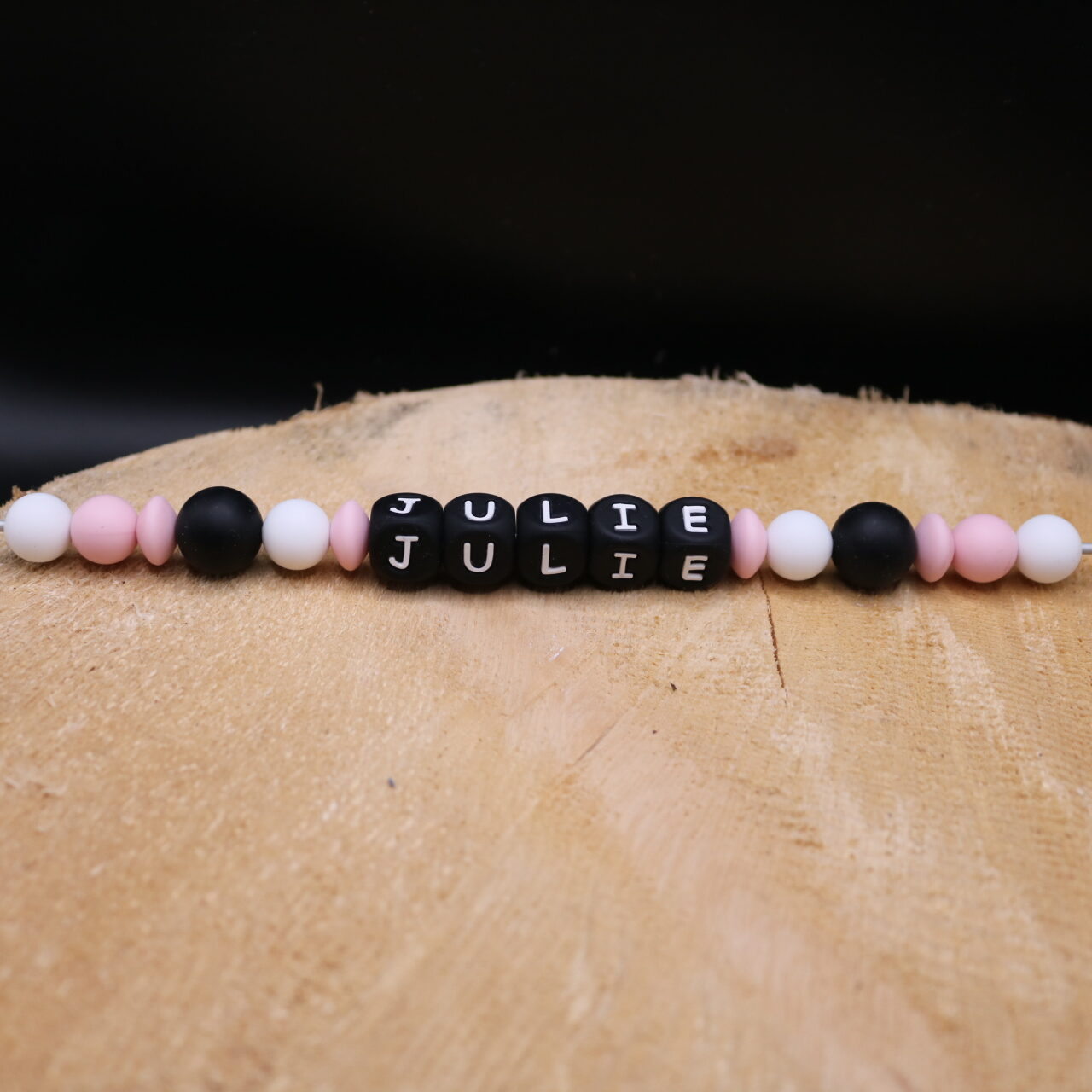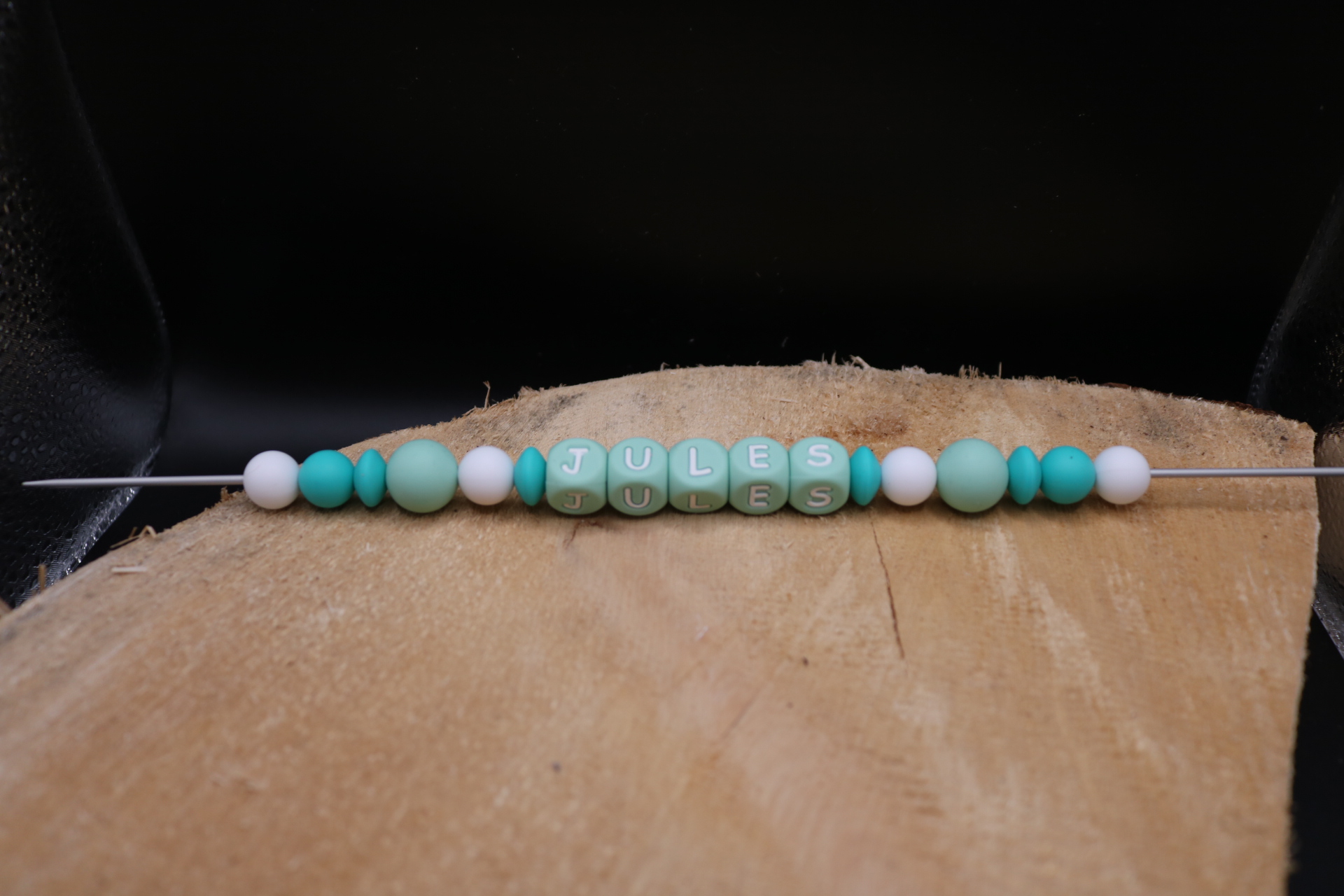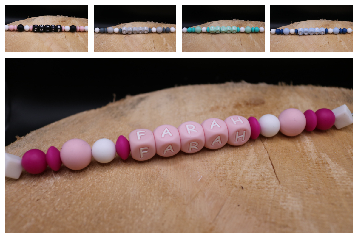 Fabriqué avec des perles en silicone, longueur max 22 cm (respect des normes de sécurité en vigueur).