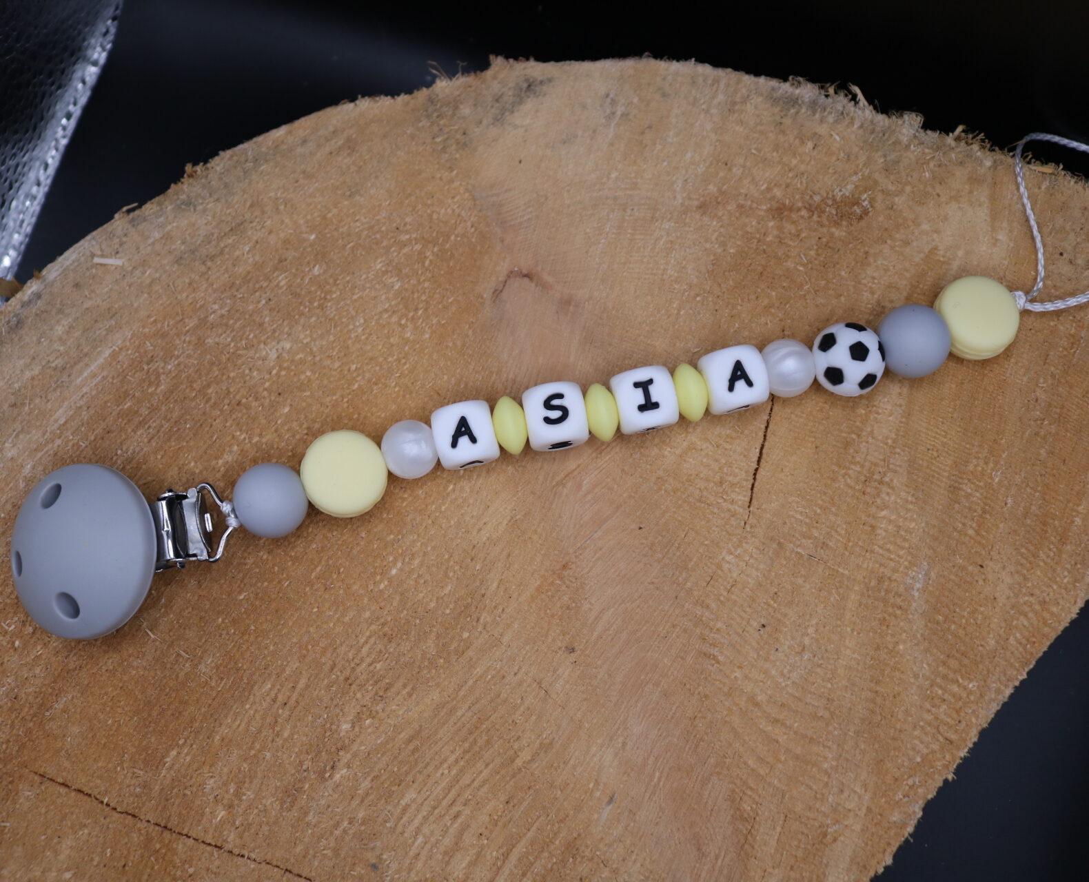 Fabriqué avec des perles en silicone, longueur max 22 cm (respect des normes de sécurité en vigueur).