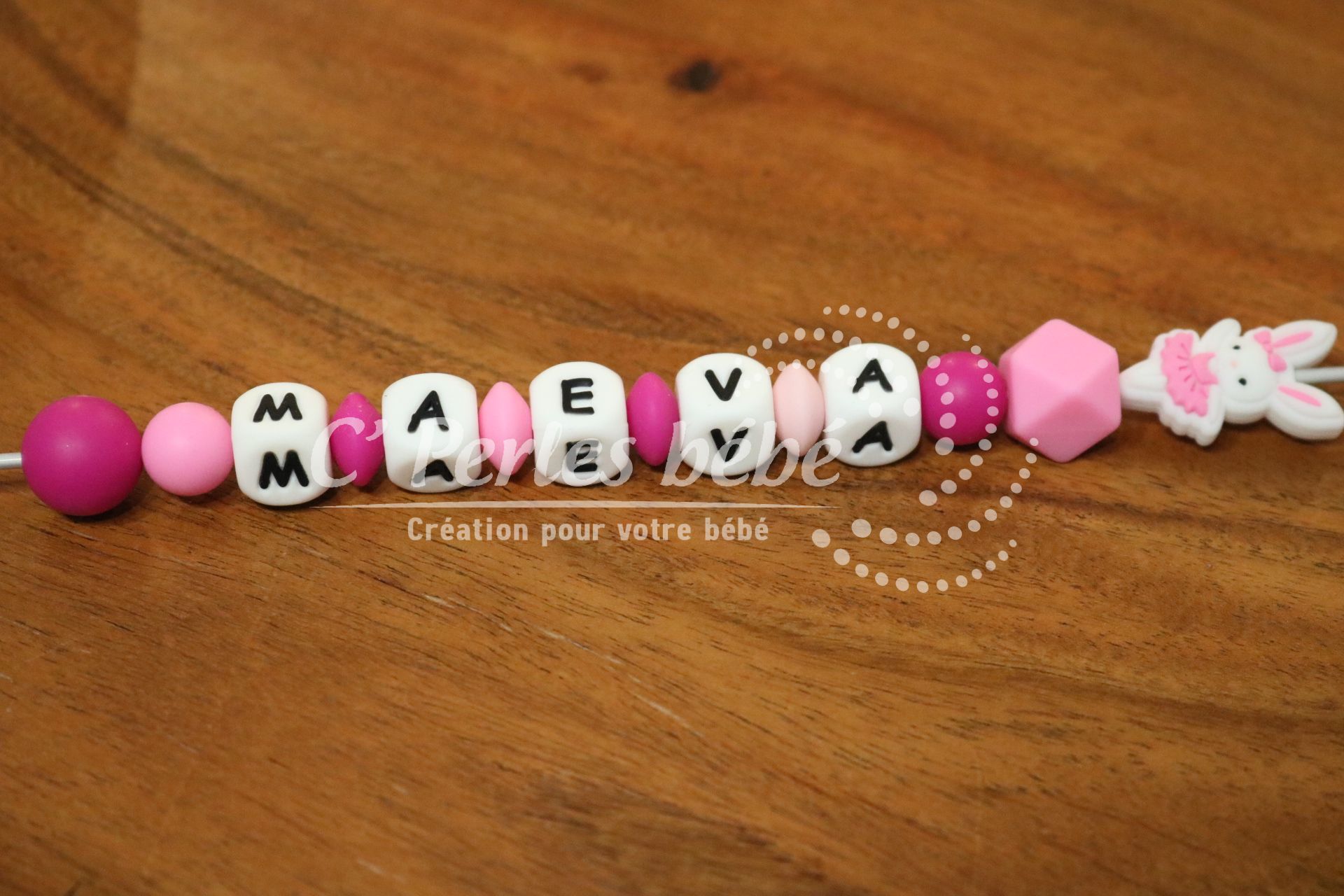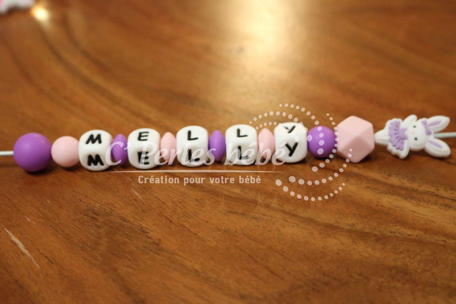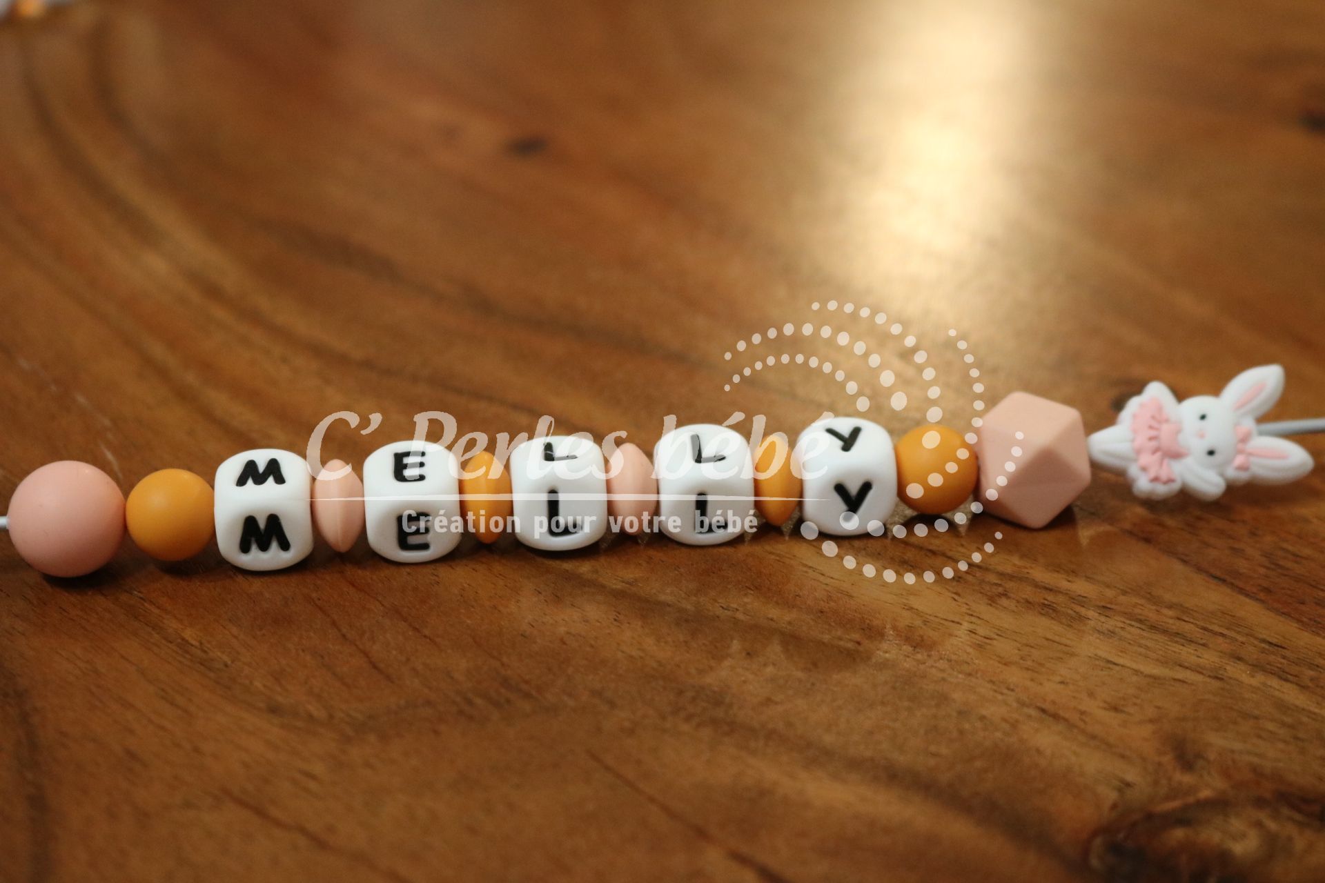 Longueur de l’attache tétine dépend du nombre de perles et de leur forme (normes 22cm max)