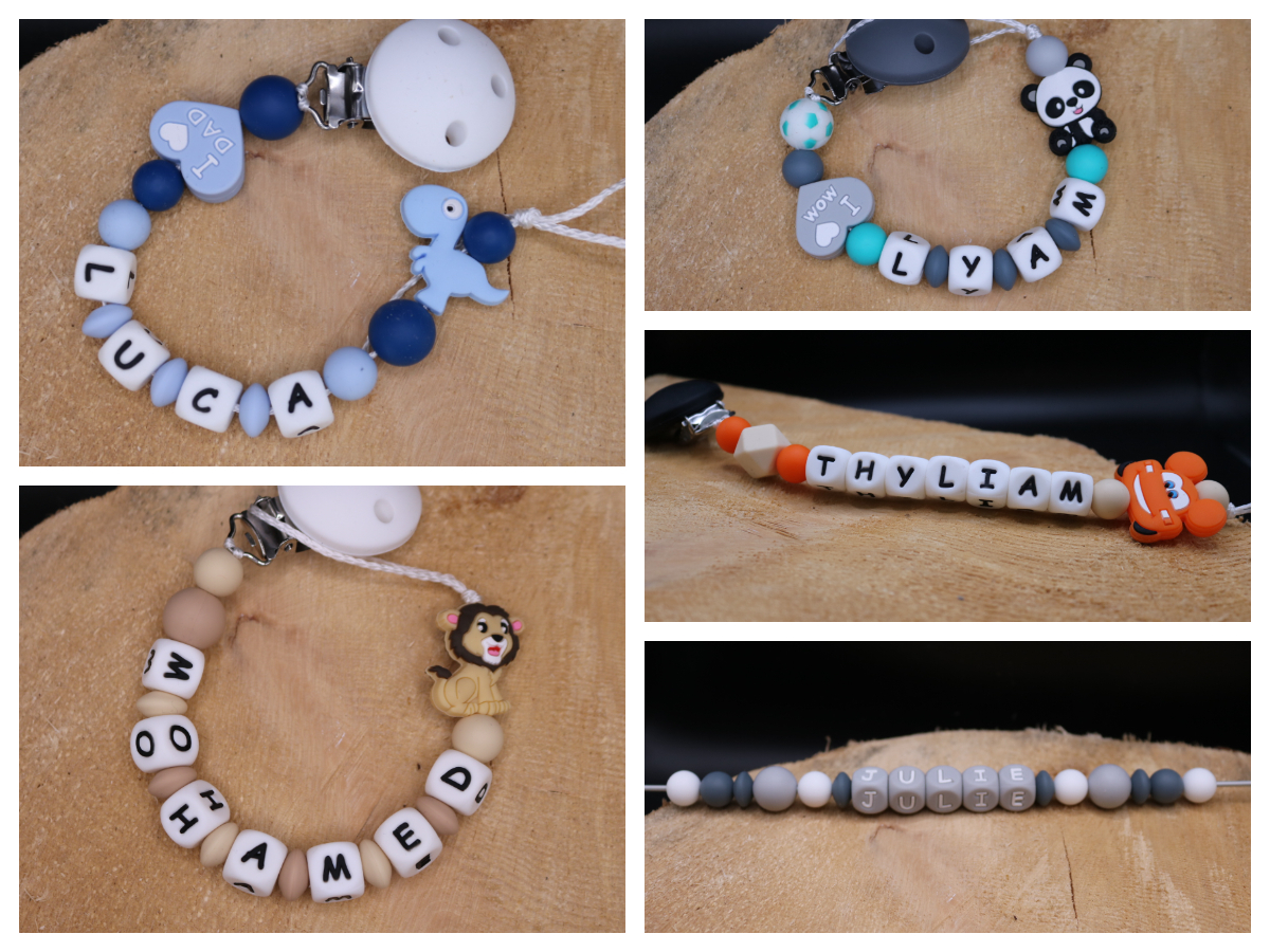 Longueur de l’attache tétine dépend du nombre de perles et de leur forme (normes 22cm max)