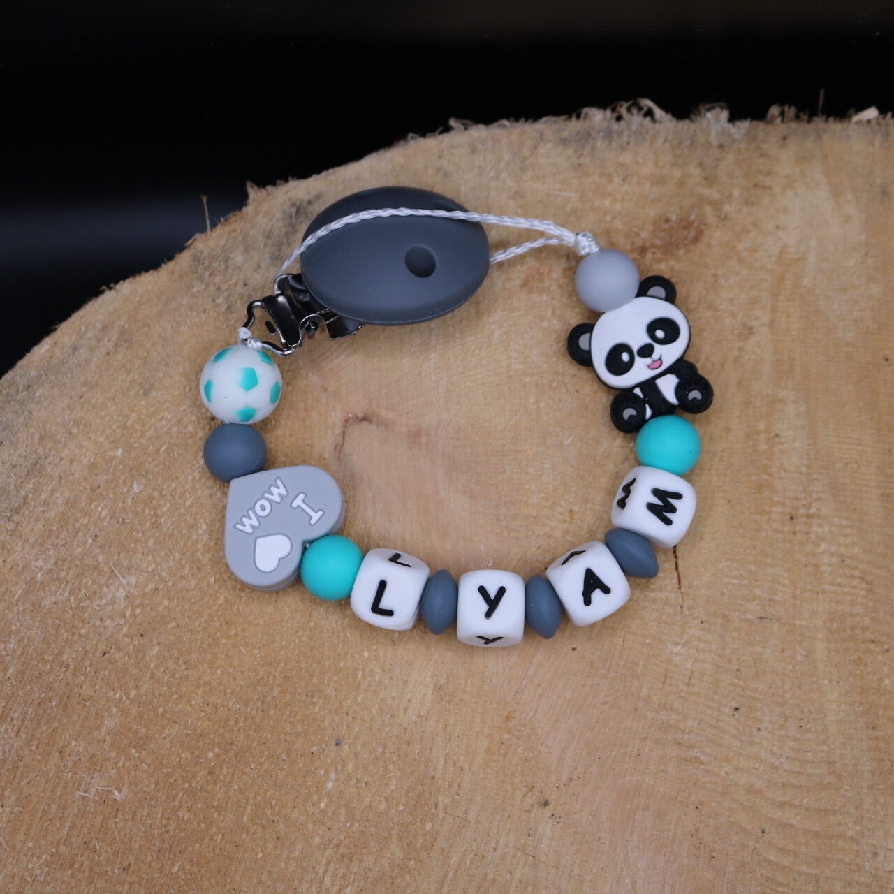 Fabriqué avec des perles en silicone, longueur max 22 cm (respect des normes de sécurité en vigueur).