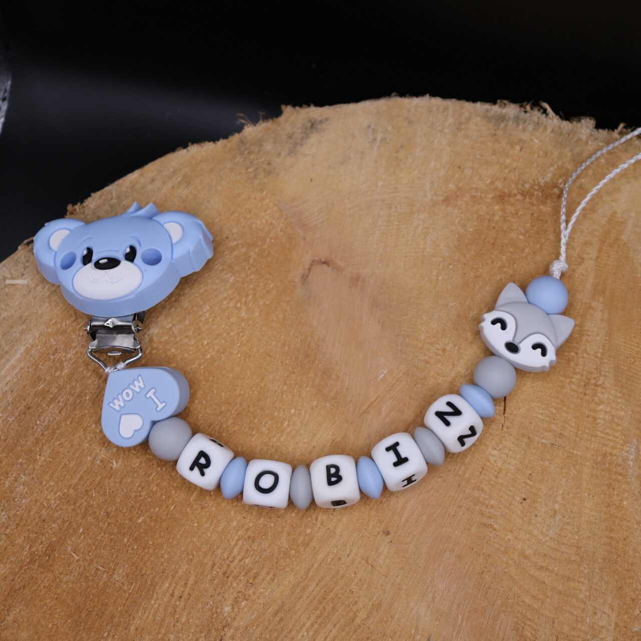 Matière douce et souple, ne craint pas la salive de bébé, les perles sont en silicone alimentaire (sans BpA, sans phtalates, …).