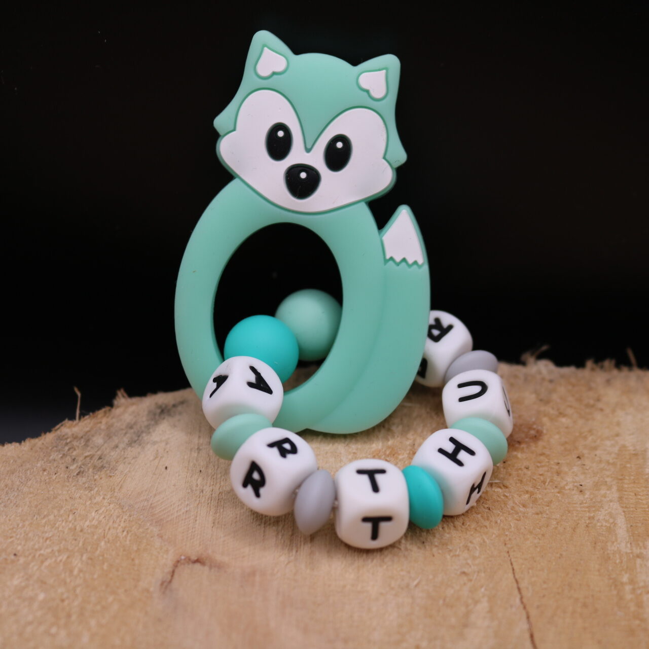 Hochet silicone Renard Loup, jouet d’éveil et de dentition